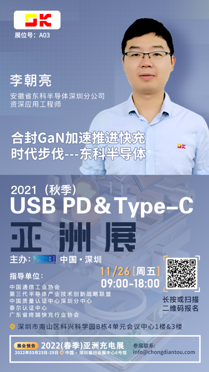 東科半導體資深應用工程師李朝亮先生將出席2021(秋季)USB PD&Type-C 亞洲大會并發表演講